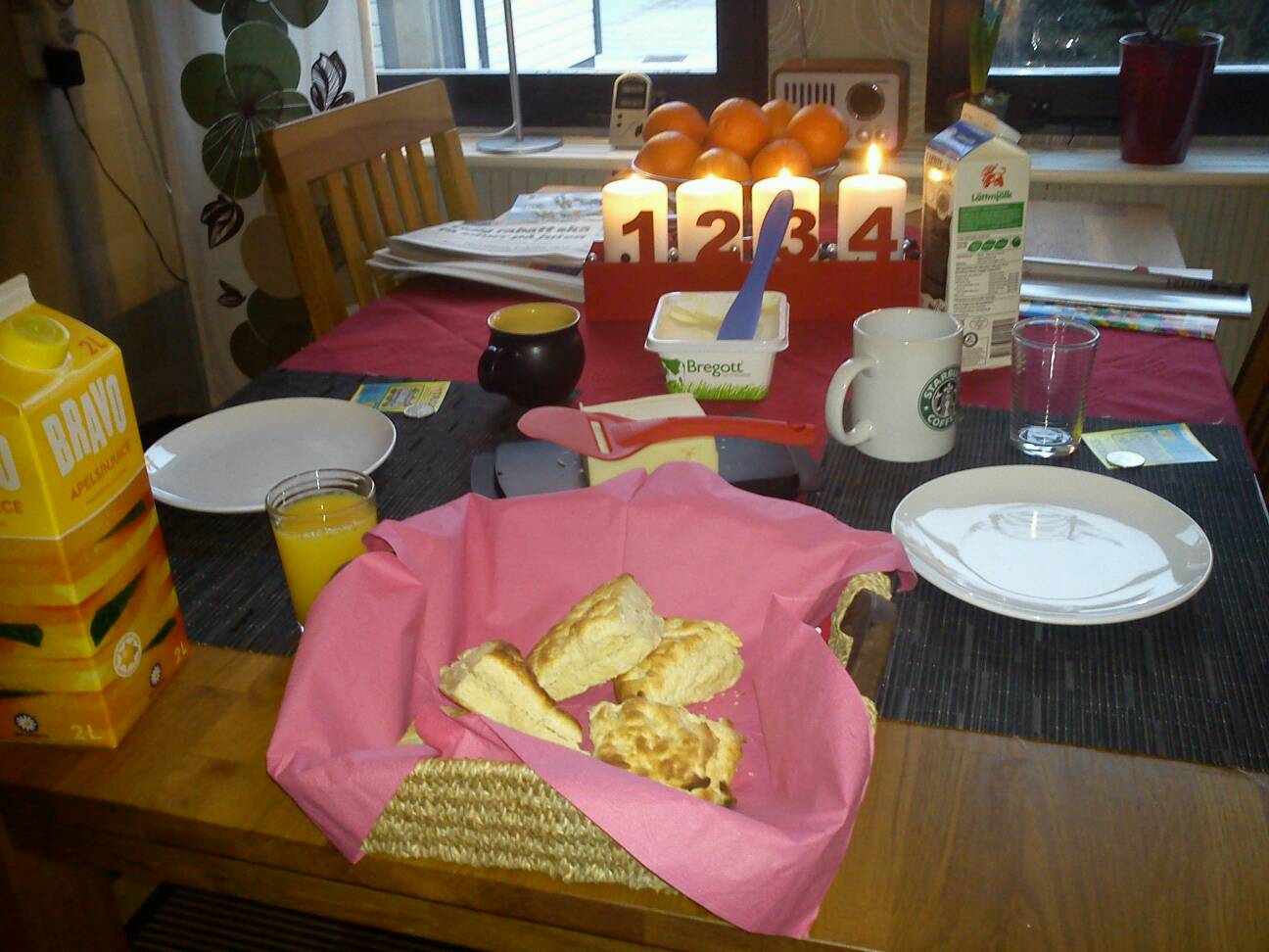 Skönt att vara på banan igen och skönt med rutiner. Söndagsfrukost med nygräddade scones. Mums :-)