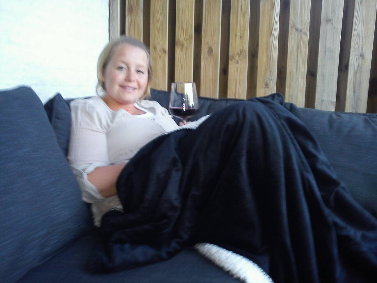 Rödvin på altanen i rottingmöblerna - Utomhus klockan halv nio! Och det är bara maj!! Ibland är livet härligt! ;-)